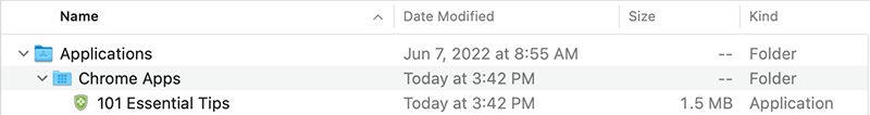In the new Finder window, navigate to Applications > Chrome Apps where you will find the app.