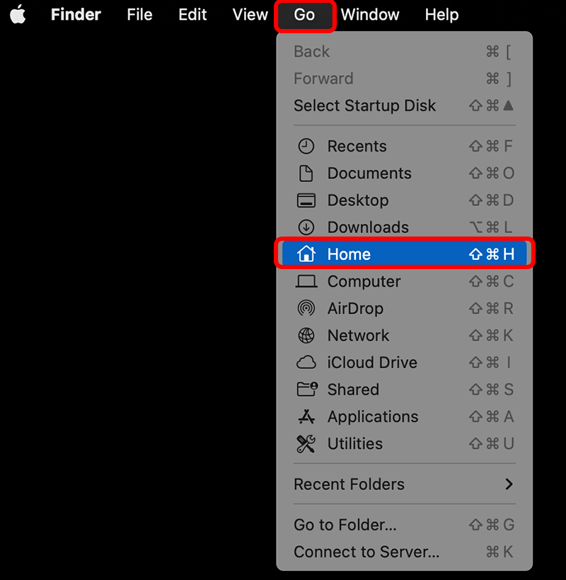 Another option is to go to select Go > Home from Finder.