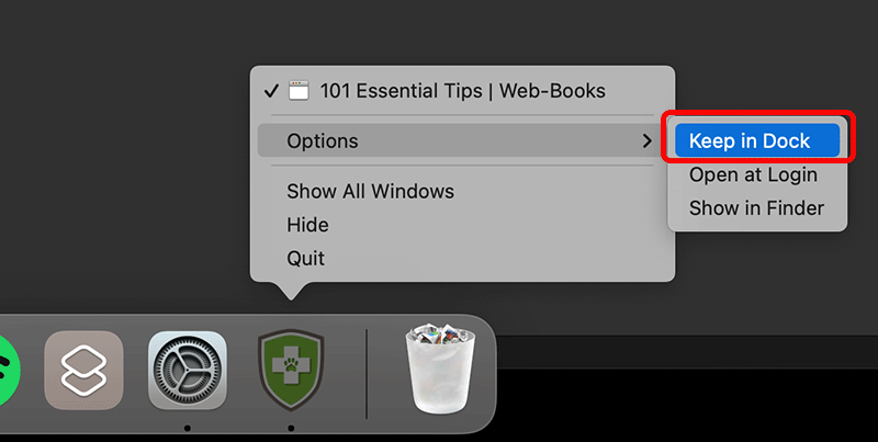 While the application is open, it is possible to right-click the icon in the dock and choose Options > Keep in Dock.