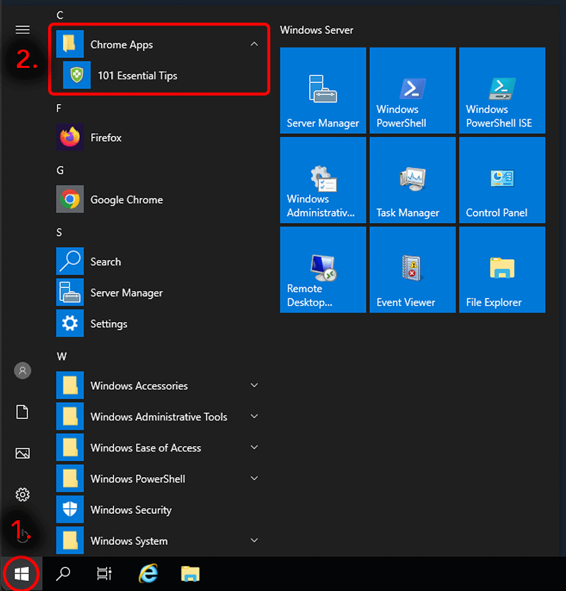 The application is also available by clicking the Windows start button, and opening up the Chrome Apps folder. * Note: On Windows 11, it may be easiest to begin typing '101 Essential Tips' in the searchbar.